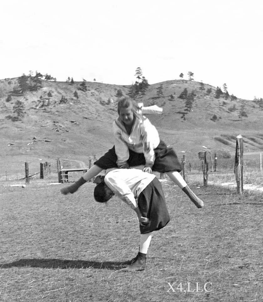 were caught leapfrogging at the log school house. They